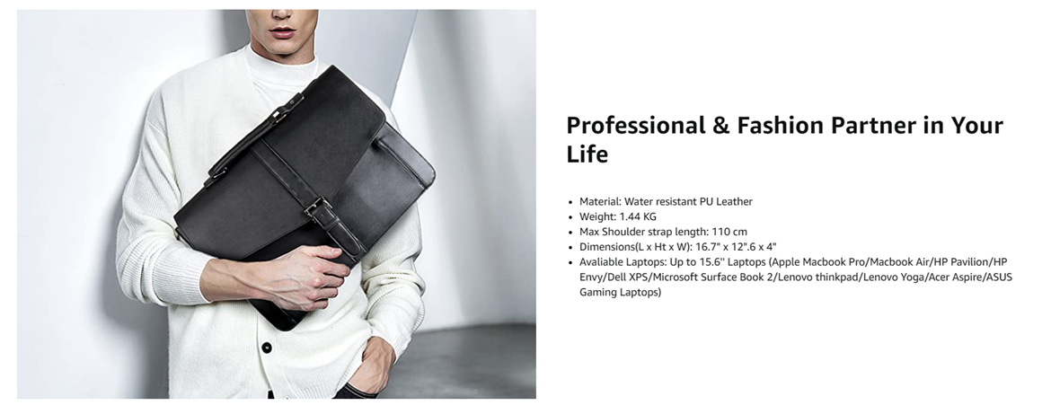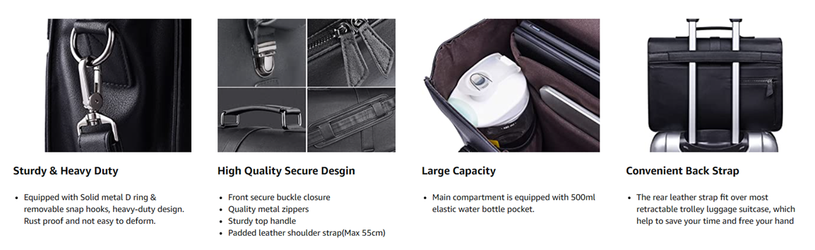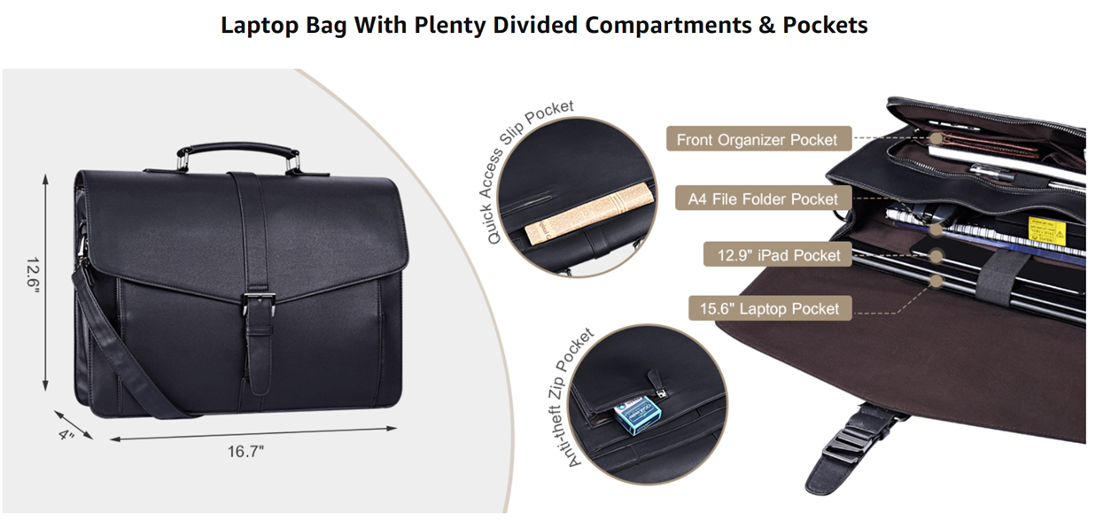 - Design Decency: This Estarer vegan leather (PU leather) briefcase is designed by our professional designers which sets you apart and outstandingly positioned in the crowd, makes you stand out as an organized person.