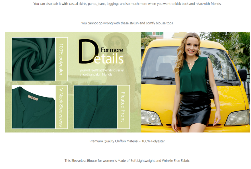 • The fabric is made of 100% polyester.When wearing these sleeveless blouse for women, you will feel that the fabric is silky smooth and skin friendly.