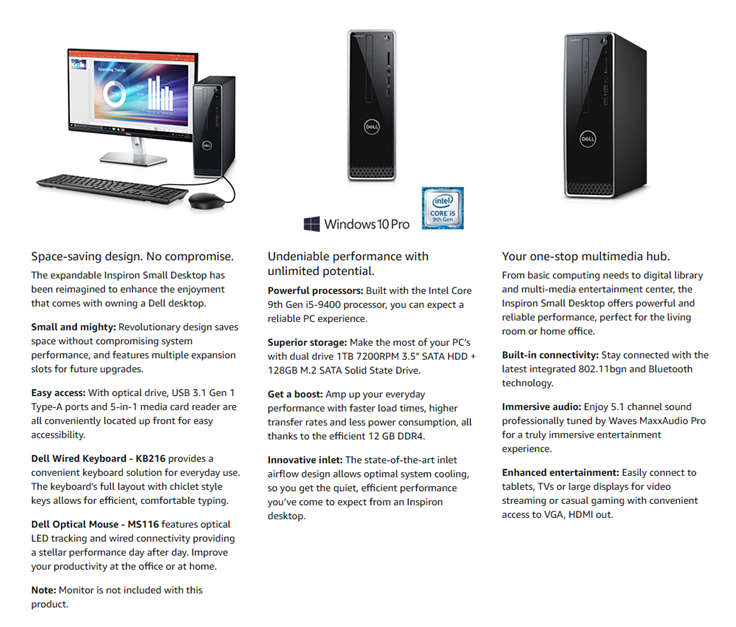 - Intel Core i5-9400 [6-Core/6-Thread 9M Cache, 4.1GHz processor with Intel Turbo Boost Technology]