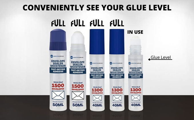 PACK SIZE: Each pack of our envelope moistener contains 5 bottles of quality envelope sealer. 2 bottles each contains 50ml adhesive, enough to safely secure more than 1500 envelopes. The extra 2 bottles each contains 40ml adhesive and can each seal more than 1300 envelopes. (Total 5,6900ML)