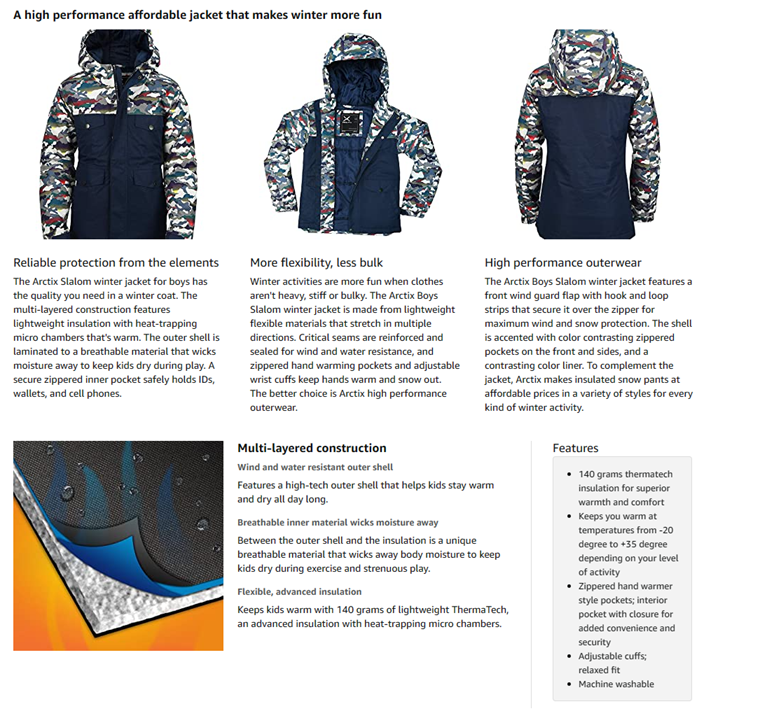 The Arctix Youth Slalom Insulated Jacket is an excellent choice for any active, winter venture. This relaxed fit, wind and water resistant jacket will keep you warm and comfortable making your next trip outdoors enjoyable. 100% Polyester Dobby with ThermaLock W/R + W/P 5000mm Coating offers a maximum degree of durability and protection. 210T Taffeta Lining. 140 grams ThermaTech Insulation offers superior warmth. Water and wind resistant ThermaLock coating. Keeps you warm at temperatures from -20° to +35° depending on your level of activity. 140 grams of thermatech insulation. Zippered Hand Warmer Style Pockets. Interior pocket with closure for added convenience and security. Adjustable Cuffs. This relaxed fit jacket is machine washable, making it perfect for outdoor activities.