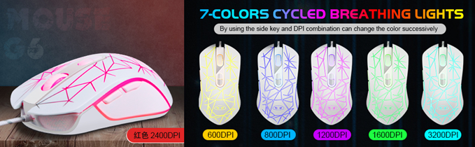 - ?【7 Colors Breathing Backlight System】The gaming mouse has 7 dazzling color breathing backlight, supports 4 levels of DPI adjustment, and has internal indicator lights, so when you are playing games, you can play at high DPI, move faster on your screen, do some quick responses and give you an unparalleled sense of gaming experience.