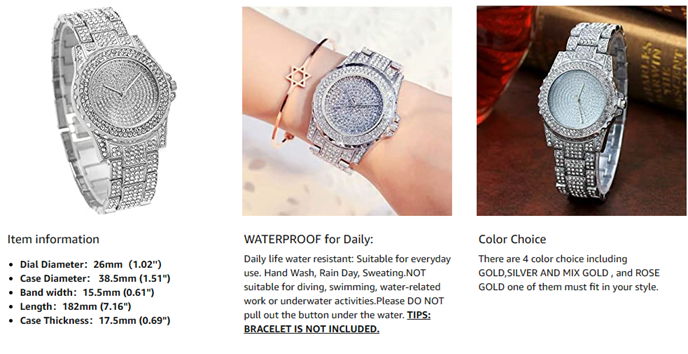 Special features | silver watch for women, watches for women, lady watch, bling watch, diamond watch for women |