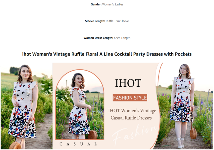 IHOT Women's Vintage Ruffle Floral Flared A Line Swing Casual Cocktail Party Dresses with Pockets