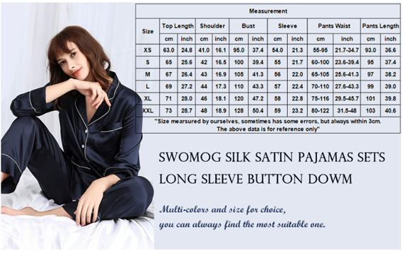 • Materials: This lightweight pajama set is made of lightweigh silk satin, soft,breathable and skin-friendly, help you have a sound sleep.
