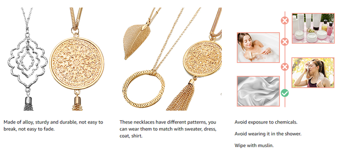 Quality Material: these long pendant necklaces are made of alloy, the sturdy and alloy material makes them not easy to break, and the color is not easy to fade, which can serve you for long time