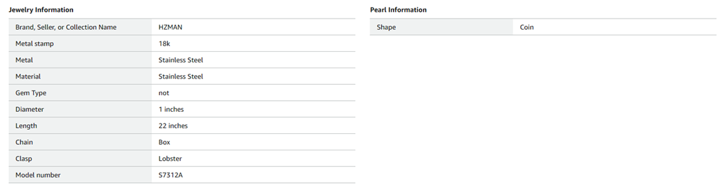 Chain Length:56cm,22inch. Chain Width:3mm
