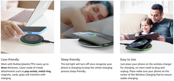 • ▶[SAFER AND EASIER TO USE]: Exclusive Multifunctional Intelligent Protect Technology provides temperature control, surge protection, short-circuit prevention. Besides that, this wireless chargers is made of ABS Material which is fire-resistant, and has a UL Certificate, you can purchase it at assurance. Double guarantee and dual safety provide you safety experience. To get better experience, we would like you to take off the phone case.