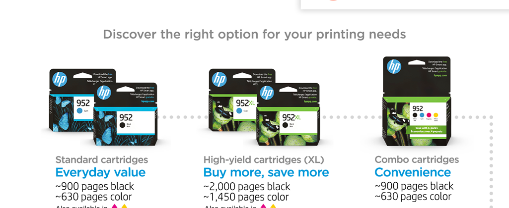 Expect professional-quality documents when you use Original HP printer ink and toner cartridges. Dependable performance, consistent page yields, and standout results are the norm – something the competition can’t match. With Original HP Ink and Toner cartridges, you can also avoid costly reprints and help ensure the flawless performance you expect from your HP printer.