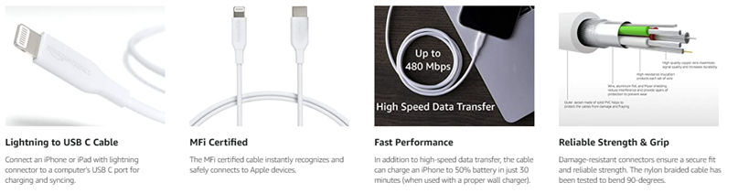 Amazon Basics USB-C to Lightning Cable, MFi Certified Charger for iPhone 11 Pro/11 Pro Max - White, 6-Foot