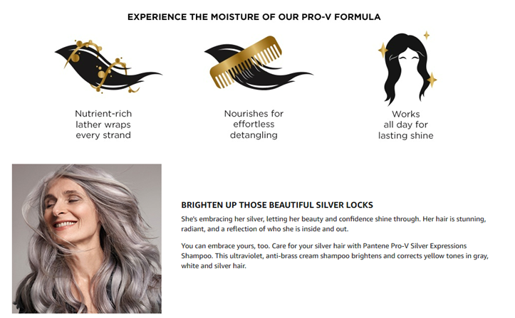 Want more silver and less gold? The Pantene Pro-V Silver Expressions Purple Shampoo you love is back with a brand new look. This purple-pigmented cream reduces dullness*, giving you a brighter, more toned look. Purple can color-correct or neutralize excess yellow, bringing back your original tone. After youve finished blaming sunshine, pool time, and even your tap water for adding brassiness, pick up your purple shampoo. It works wonders for gray, white, and silver hair. Lather up daily, or as you see fit, always making sure to leave it in for 3-5 minutes for the best results. Meanwhile, enjoy the luxurious scent of lotus flowers. Now you're on your way to another #greathairday.
