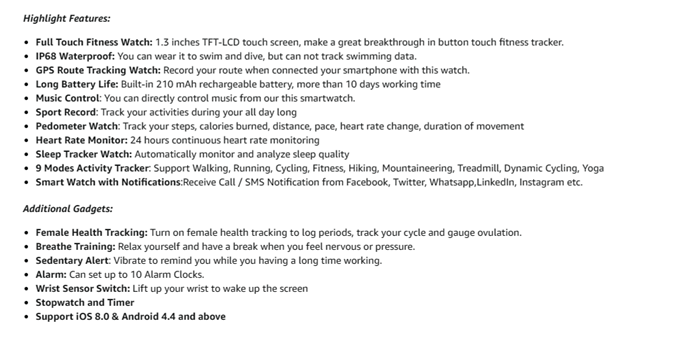 • ✔【More Practical Gadgets & 9 Exercise Modes】- Fitpolo smart watch has features with many practical tools, such as customized watch faces, alarm clocks, stopwatch, timer,music controller, sedentary reminder, adjustable brightness, find phone. The APP's name is VeryFitPro, which works with Android 4.4 or iOS 8.0 and above, Bluetooth 5.0 and above smartphones only, NOT FOR PC or TABLET.