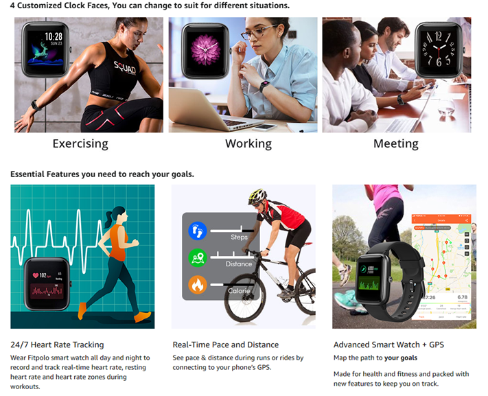 • ⌚【IP68 Waterproof Fitness Watch & Long-lasting Battery】- Fitpolo Smart Watches are designed with IP68 waterproof rating, which allows you to swim in the pool with it with no worries. Large capacity and low power consumption design offers longer endurance. It supports 7 days of normal use and 35 days standby time.
