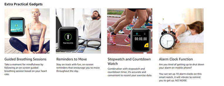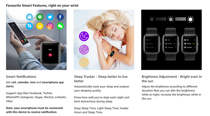• ⌚【24/7 Heart Rate Monitor & Sleep Tracker】Automatically monitor your real-time heart rate and your sleep (Deep sleep, Light sleep and Awake time)to tell you how long and how well you sleep during the night, helping you to adjust yourself to live a better lifestyle.