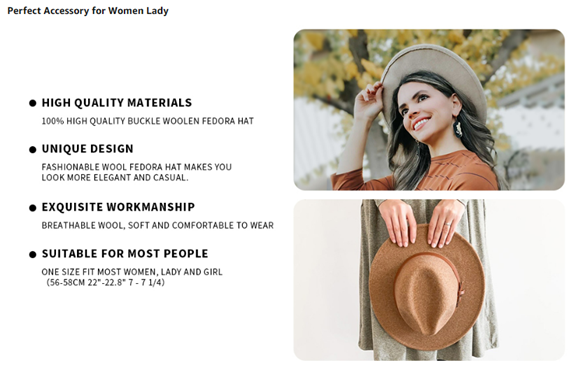 • Size:One size fit all most women. Hat Circumference 22.6'',Fit 22"-22.8" 7 1/8-7 1/4 size; Brim 2.9" 。