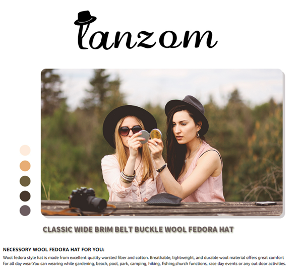 Lanzom Women Lady Felt Fedora Hat Wide Brim Wool Panama Hats with Band