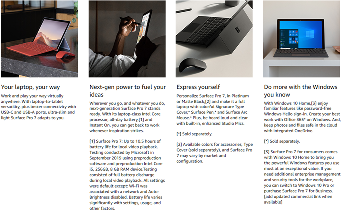 • Standout design that won’t weigh you down — ultra-slim and light Surface Pro 7 starts at just 1.70 pounds