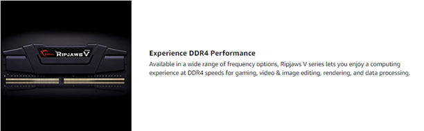Ripjaws V series DDR4 DRAM memory is designed for sleek aesthetics and performance, making it an ideal choice for building a new PC system or for upgrading your system memory.