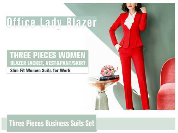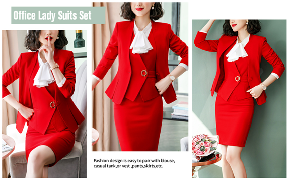 LISUEYNE Women's Three Pieces Office Lady Blazer Business Suit Set Women Suits for Work Skirt/Pant,Vest and Jacket