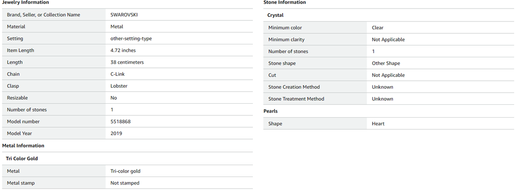 Items delivered: 1 x Swarovski infinity double heart pendant for women, 14 7/8 inch mixed metal plated chain, with sparkling clear crystals, complete with Swarovski necklace box