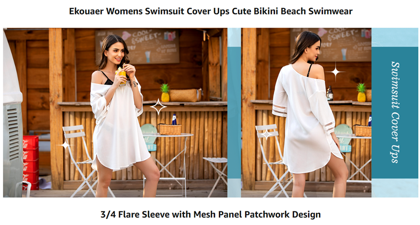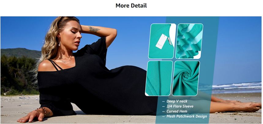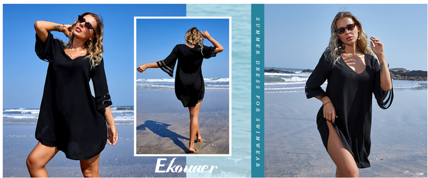 • 【Unique Design】Features the deep v-neck and 3/4 bell sleeve with mesh panel patchwork design, you can easily create a stylish and cute look with a sun hat and sunglasses. Loose-fitting, flowing cover up features bell sleeves with a flounce effect at the cuff for added flair. This knee-length dress will let you enjoy silky smoothness when you're walking.