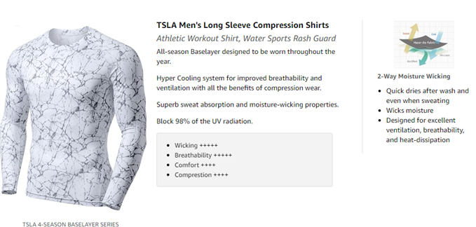 TSLA Hyper-CTRL Baselayer Series designed for releases heat and wicks moisture with a cooling effect.