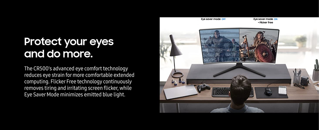 - PROTECT YOUR EYES & DO MORE: Advanced eye comfort technology reduces eye strain for more comfortable extended computing; Flicker Free technology continuously removes tiring & irritating screen flicker, while Eye Saver Mode minimizes emitted blue light