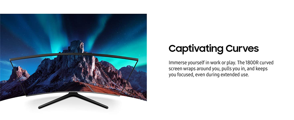 - CAPTIVATING CURVES: Immerse yourself in work or play; The 1800R curved screen wraps around you, pulls you in, and keeps you focused, even during extended use