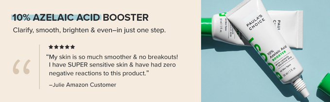 Paula's Choice 10% Azelaic Acid Booster also contains salicylic acid (BHA) a gentle exfoliator. The multi-tasking formula boasts a lightweight, oil-free texture that works beautifully on its own or mixed with other acne treatments, like benzoyl peroxide.