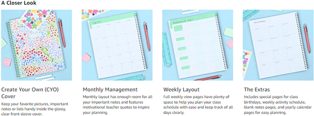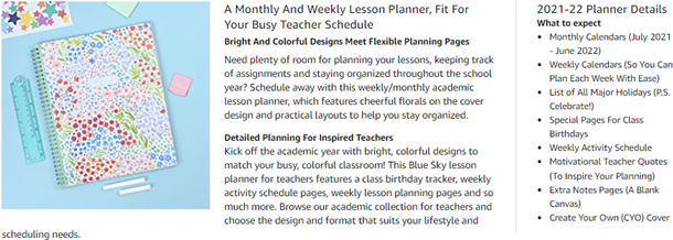 Kick off the academic year with bright, colorful designs to match your busy, colorful classroom! This colorful weekly and monthly lesson planner will help you and your students stay on track throughout the school year with dated weekly/monthly views. Monthly two-page view features reference calendars for long-term planning, a notes section for important details, and motivational teacher quotes to inspire your planning. Weekly two-page view offers lesson planning layouts with ample writing space for detailing each day. With a class birthday tracker, weekly activity schedule pages and weekly lesson planning pages, this yearly planner offers so much more than your average planner! Insert your favorite photos inside the glossy, clear front sleeve cover for a unique planner cover. High quality white paper with durable coated tabbed dividers are long lasting and make accessing information a breeze. Premium quality covers and twin-wire binding provide reliable durability for daily use. Stay on track throughout the academic year with this 8.5 x 11 lesson planner dated July 2021 - June 2022. Mix and match with other professional planning products from Blue Sky to organize your daily life. Blue Sky creates modern and sophisticated organizational planners and calendars to fit the scheduling needs of busy people - whether it’s for business professionals, college students, teachers, or anyone with appointments to make note of. Keep your life organized with our full line of products including desk pad calendars, wirebound tabbed weekly and monthly planners with contacts and notes pages to accommodate your scheduling needs, and laminated two-sided wall calendars, all in a variety of colors and patterns to suit your lifestyle and personality.
