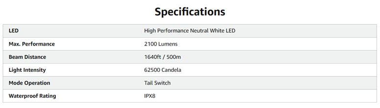 Brightness | 2100 Lumen |