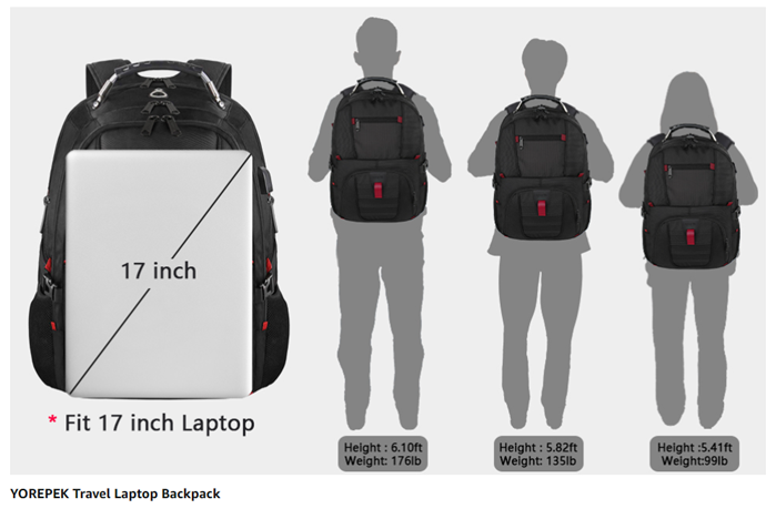 Large Capacity & Organized: The large backpack owns 3 spacious compartments-one separate laptop compartment that fits 17-inch laptops, and one main compartment roomy for daily necessities, such as clothes, notebooks, etc. The front compartment has many small pockets, as well as pen pockets and a keychain design to keep your things organized. The large backpack for men has 10+ pockets, including 2 side mesh pockets for water bottles and umbrellas. Size: 18"x13.5"x6.5"