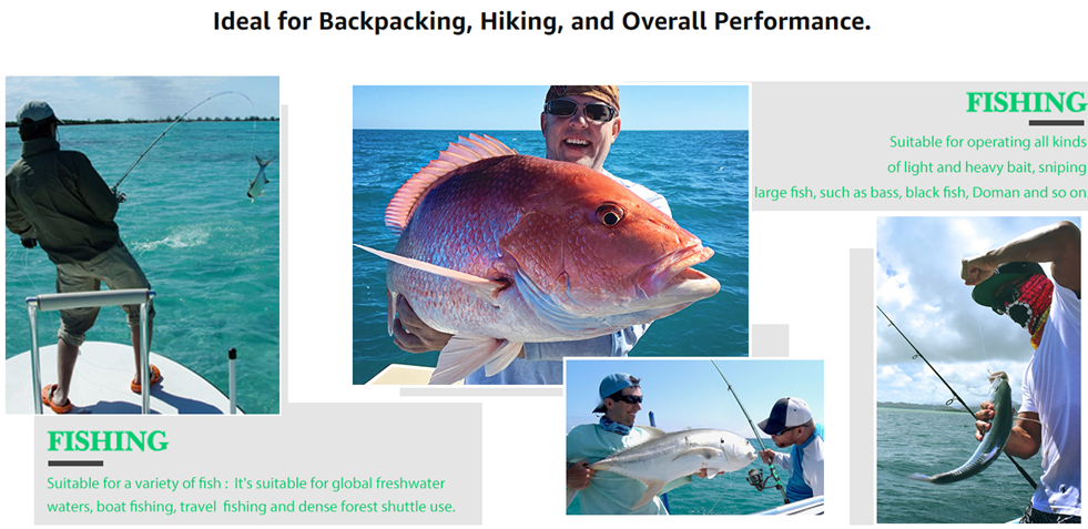 • Sougayilang telescopic fishing rod are constructed with High Density 24-Ton Carbon Fiber reinforced with Fiberglass Composite for power and elasticity ; Thewelded stainless steel guides with Zirconium Oxide rings for superior casting distance and accuracy while dissipating heat more efficiently which delivers excellent durability with monofilament, fluorocarbon and braided lines.
