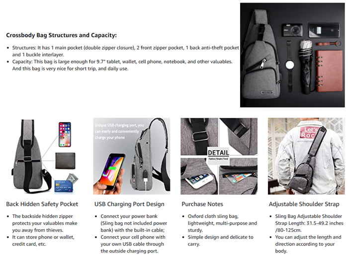 Enjoy the relaxed music and give you full power anytime and anywhere with unique USB charging port, you can easily and conveniently charge your phone, tablet, ipad and other devices without opening up the crossbody bag.