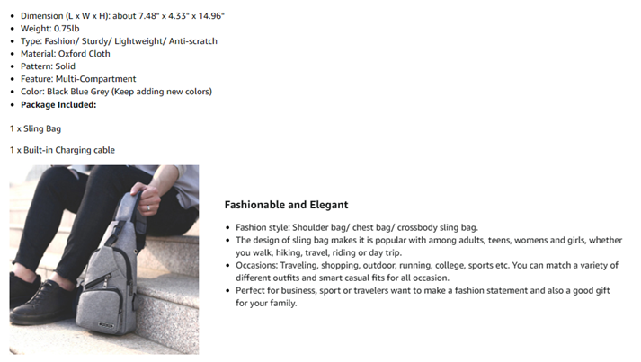 Oxford cloth sling bag, lightweight, multi-purpose and sturdy. Simple design and delicate to carry.