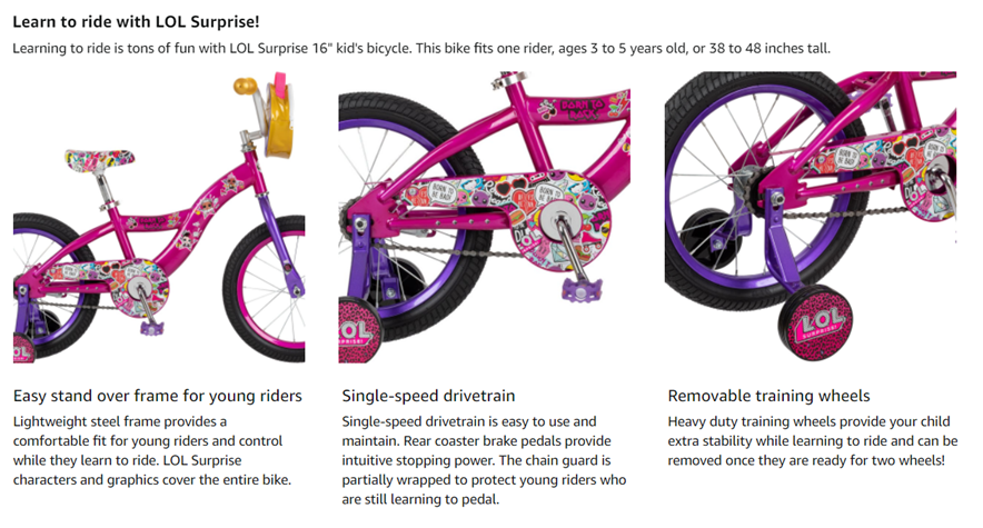 Model Name | LOL Surprise Girls Bike, 16-Inch Wheels, Pink |