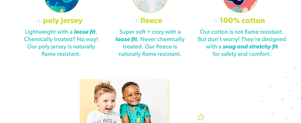 An brand - For safety, sleepwear should be either flame resistant or snug-fitting. This item has snug-fitting tops and loose fitting flame resistant bottoms