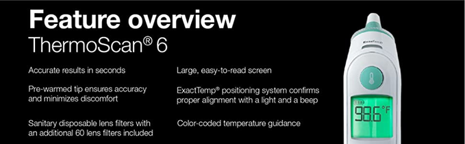 - RELIABLE RESULTS – Get quick, reliable results with the Braun ThermoScan 6 Digital Thermometer. This ear thermometer has an easy to read digital display, color-coded temperature reading and a pre-warmed tip to ensure accurate readings