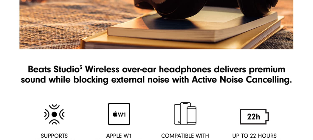 • What's in the box: Beats Studio3 Wireless headphones, Carrying case, 3.5mm RemoteTalk cable, Universal USB charging cable, Quick Start Guide, Warranty Card (USB power adapter sold separately)