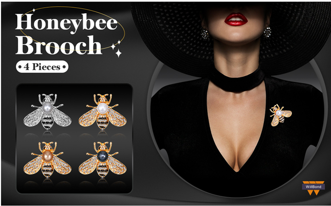 WILLBOND 4 Pieces Honey Bee Brooch Lapel Pins for Women Crystal Insect Themed Bee Brooches with Faux Pearl Fashion Gift for Birthday Dating Party Anniversary