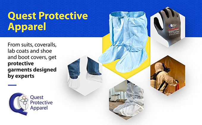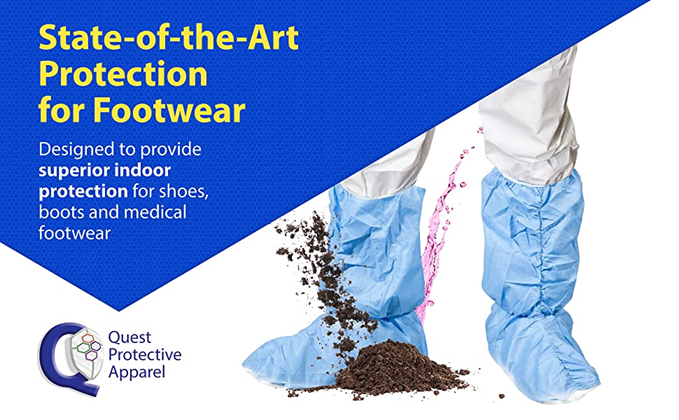 • Quest’s disposable non slip boot and shoe covers are manufactured from coated waterproof polypropylene SMS material, providing you with indoor protection from light splashes throughout the day