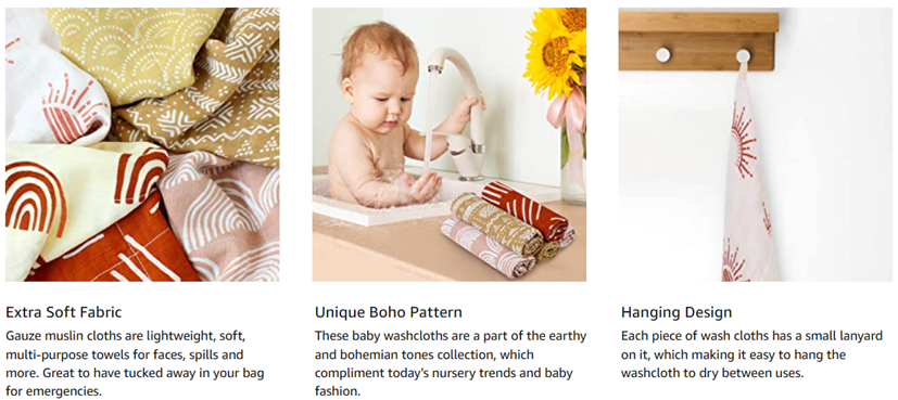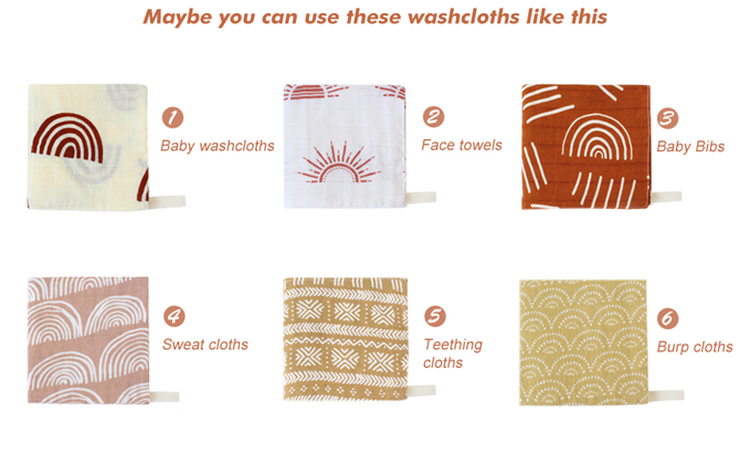 Best uses | baby washcloths, face towels, bath towels, bibs |