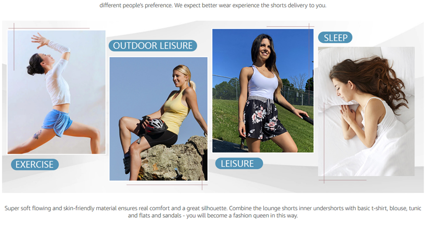 Double layer design : Women shorts for summer with lining design can prevent friction , make your movement more convenient , more comfortable.