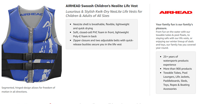 WATER ADVENTURES – The Swoosh Kwik Dry Neolite Life Jacket provides a secure fit and all day comfort for boating and water sports alike. Keep your water adventures fun, safe and comfortable with this Type III USCG Approved Life Jacket