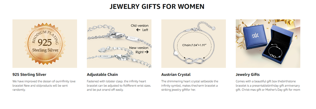 ? 925 STERLING SILVER BRACELETS ? CDE women’s bracelets are made of gold-plated 925 sterling silver. Fastened with a lobster clasp, this adjustable bracelet is embellished with a heart charm and an infinity symbol glittering with Austrian crystals.