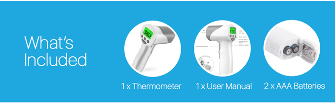 • What You Get: 1x infrared thermometer, 2x AAA batteries, 1x instruction manual and hassle free 12 months warranty.