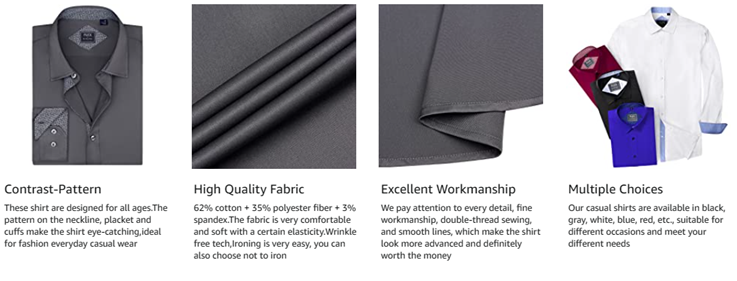 • Design: Our shirts are US regular fit tailoring style. Contrasting prints on the neckline, placket and cuffs, make the shirt more fashion and eye-catching