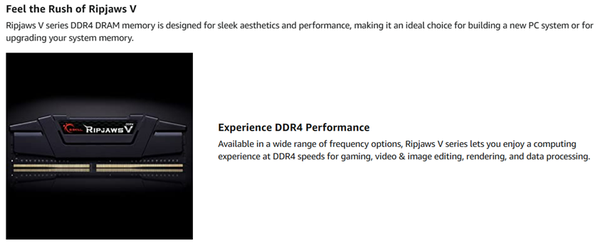 • RipJaws V Series, designed specifically for AMD Ryzen X570 Series; Intel Z390, Z490, Z590, Z690 and newer.