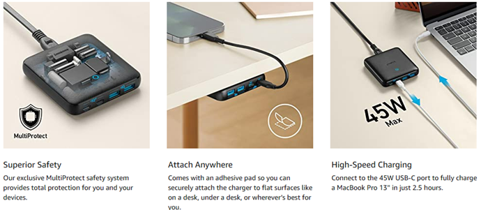 • High-Speed USB-C Charging: Charge USB-C notebooks at high-speed via the 45W USB-C port, or get a powerful charge for tablets and other mobile devices via the 18W USB-C port.
