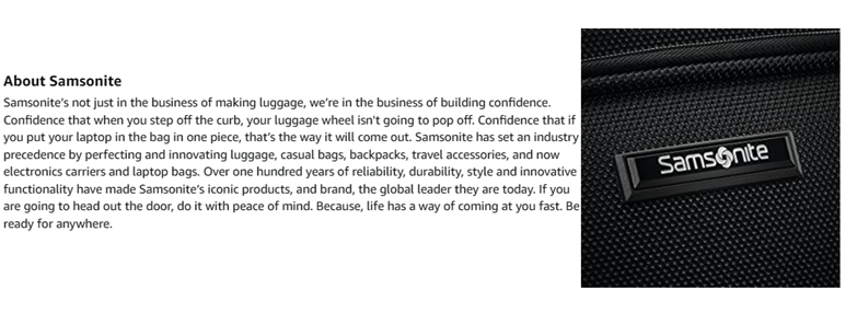 - 10 YEAR LIMITED WARRANTY: Samsonite products are rigorously tested to ensure our products meet stringent standards. This bag comes with a 10-year warranty against defects in materials and workmanship.